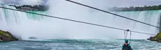 Mit einem der Katamarane von Niagara City Cruises direkt hinein ins tosende Inferno der Horseshoe Falls! Vollwäsche ist garantiert, die rote Regenhaut ist daher im Ticketpreis inbegriffen. Auf drei Seiten von ungeheuren Wassermassen umgeben, beeindrucken die Fälle am meisten.